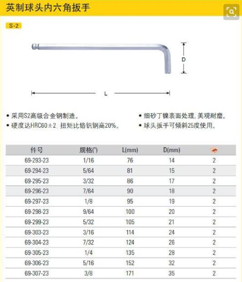 這兩種內六角扳手除對邊和長度制式不同尺寸有些差異,外形沒有區(qū)別。
